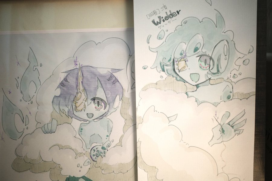 こうやって並べると、ヴィッダーがちょっとやんちゃ少年、イヴがお母さんぽく見えるのなんでだ…? ちなみに、イヴもヴィッダーも他の飛沫たちも無性別。 →旧・現母星みたく男と女が切り替わるのではなく、こちらは男にも女にもならないタイプ。 イヴとヴィッダー。 主と子ども。![]()