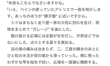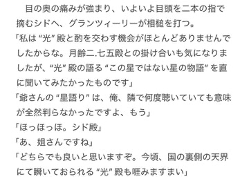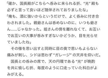 これ前に話したかちょっと覚えてないけどまぁいいや。 〈大極夜〉の話には、シドが絶命するまでの話が混ざってます。あと、これ国長様の話が差し込まれてないんで後で差し込みます(((((( 旧母星時代の話はサルベージ後に増やしていきたい…というか僕が読みたいんですよ(((((