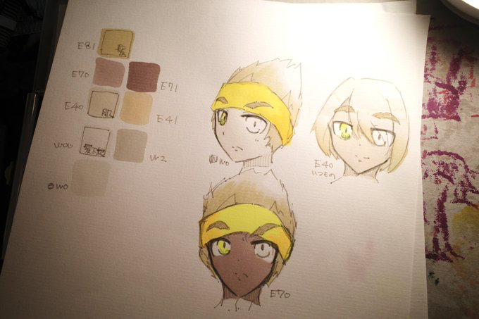 「シドの肌は人肌の色をしていない」が本来のシドの肌色。 なので、実はW00で塗った肌のほうが本来のシドの肌色らしい色になるんですが、ちょっと白すぎるんで却下。 逆に濃くし過ぎるのもおかしかったので元のE40に。 白石色の肌です。 肌色再考楽描。![]()
