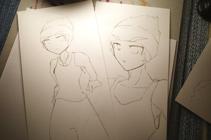 んーーーーー。 五月からがつがつ常夏お兄さん描いてるけど、当時の格好良さを再現出来ないの割と堪えるな… この初期イラストの雰囲気再現したい。![]()