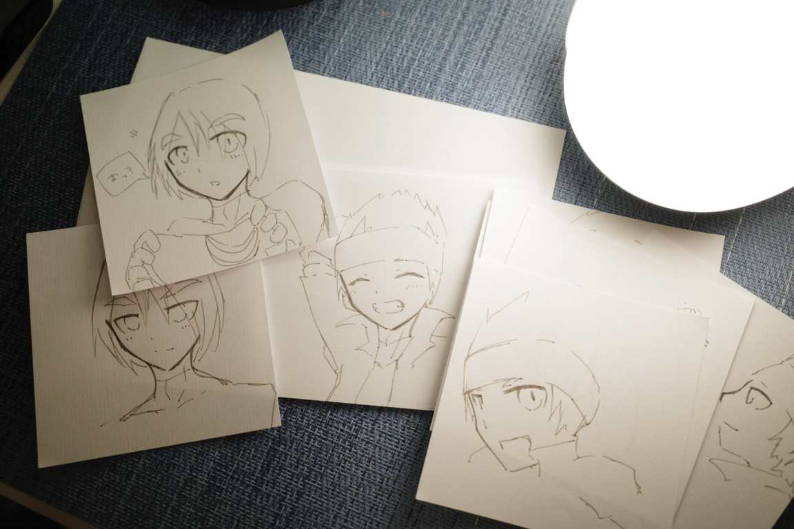 昨日は描きたい表情が描けなくて描き損じ量産。 もっとあるけどとりあえずこのあたり。 2025/12/20 20:51 照れ笑いシド元絵と描き損じ一部。![]()