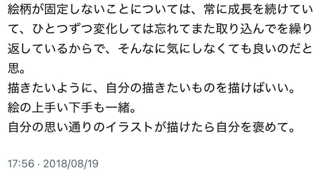 自分から見てめちゃくちゃ素敵な絵を描くひとだって自身の絵柄にひとつも満足してないところ、僕は何度も見てきたからさ。